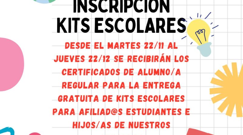 Leer másHemos comenzado la Inscripción para la entrega de KITS ESCOLARES GRATUITOS a afiliad@s estudiantes e hijos/as de nuestros afiliad@s para